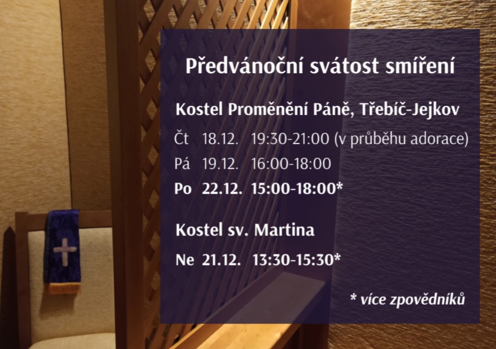 - Předvánoční zpovídání na Jejkově Rozpis předvánoční svátosti smíření je k dispozici ZDE
